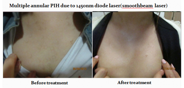 1450nm diode laser(smoothbeam lase)를 사용 후 multiple annular PIH가 발생하는 원인과 그 치료법에 대하여 강의하려고 합니다.