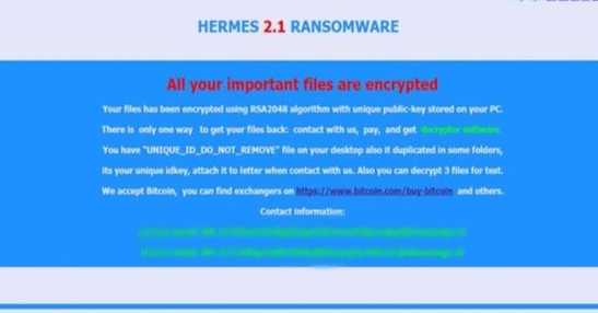 ‘헤르메스 랜섬웨어’(Hermes Ransomware)가 국내에 유포되고 있어 이용자 주의가 요구된다.