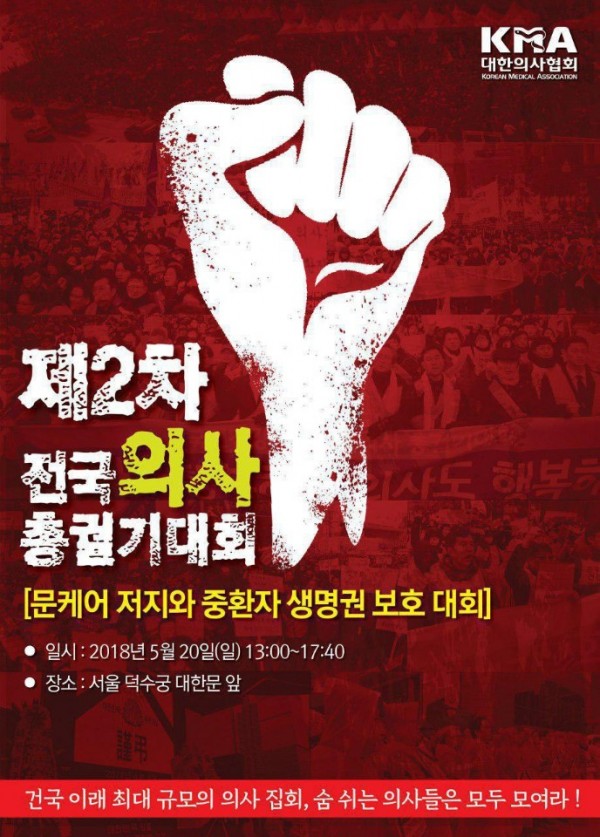 2018.5.20. 제2차 전국의사총궐기대회의 주제는 ‘문재인 케어 저지 및 중환자 생명권 보호 대회’입니다.