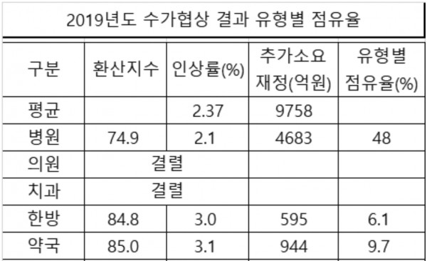 - 공단 2.8% 인상률 제시에 2019년 수가협상 결렬