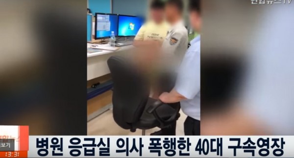 술에 취해 손과 발로 병원 응급실 의사를 무차별 폭행한 40대가 구속됐다.