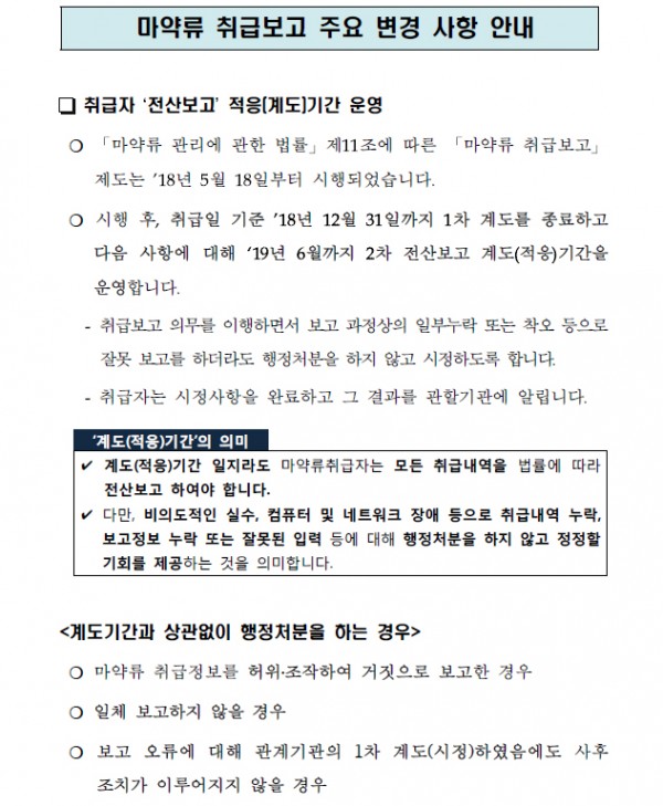 마약류 취급보고 제도 계도기간 6개월 연장 안내