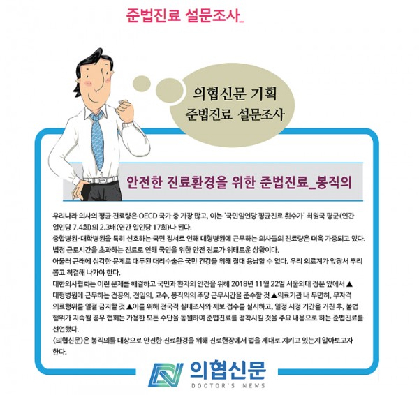 안전한 진료환경을 위한 준법진료에 관한 설문조사를 의협신문에서 진행하고 있습니다.