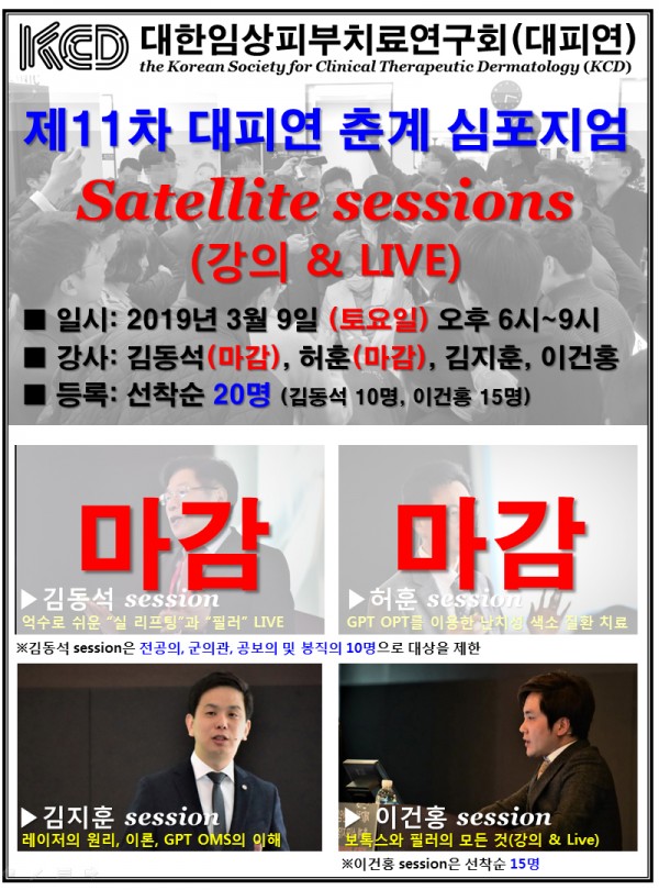 제11차 대피연 춘계 심포지엄 전날 개최되는 satellite session 중 “김동석 session”이 마감 되었습니다 (허훈 session도 이전에 마감 되었습니다).
