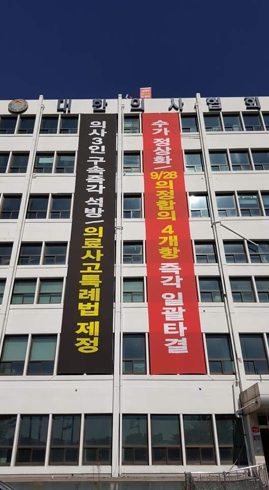 의협 최대집 회장 등 집행부는 27일 밤, 해당 의사들이 구속돼 있는 수원구치소 앞 철야 농성에 이어 28일 아침 청와대 앞 시위로 규탄에 나섰다. 30일에는 국회 앞에서도 시위를 펼칠 예정이다.