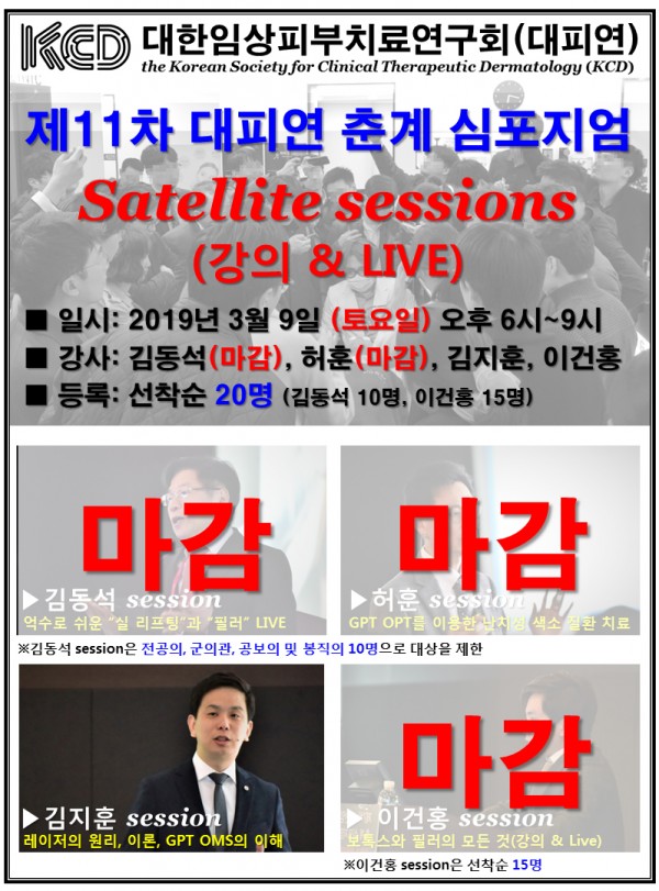 제11차 대피연 춘계 심포지엄 전날 개최되는 satellite session 중 “김동석 session”이 마감 되었습니다 (허훈, 김동석 session도 이전에 이미 마감 되었습니다).