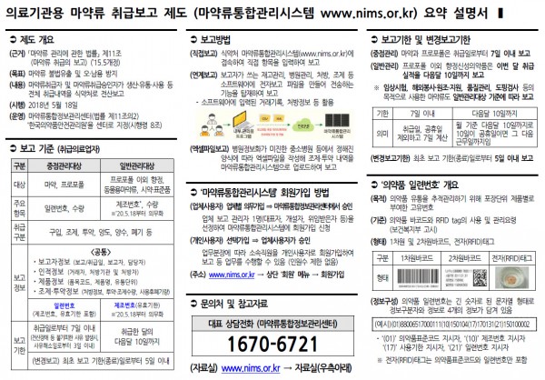 마약류 취급보고 제도 요약설명서(의료기관용) 안내