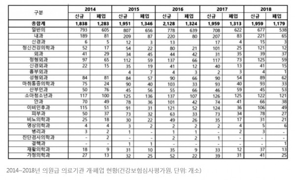 ▷의원 폐업률 3.8%...성형·일반의원·소청과 특히 높아