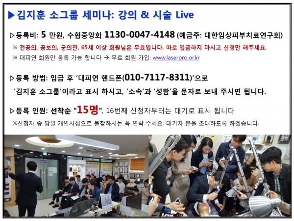 ▷등록비: 5 만원, 수협중앙회 1130-0047-4148 (예금주: 대한임상피부치료연구회)