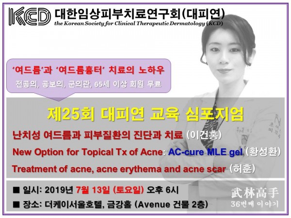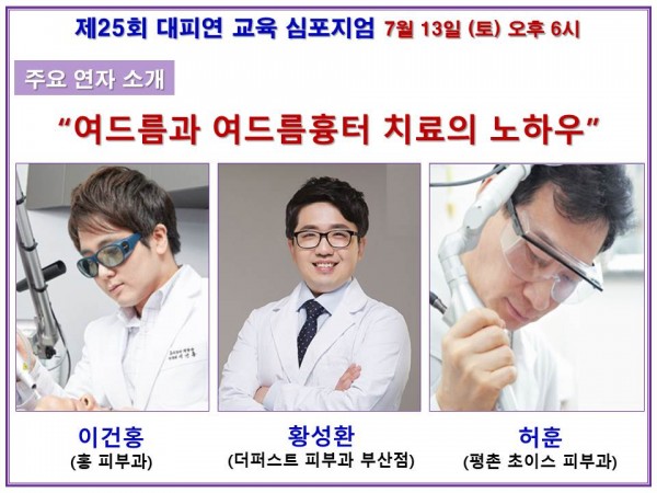 이번 교육심포지엄에서는 “여드름과 여드름흉터 치료의 노하우”라는 주제하여 강의들을 구성해 봤습니다.