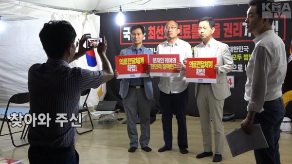 본 회 김지훈 총무이사가 7월 5일 단식 농성 4일째에 접어든 대한의사협회 최대집 회장이 농성 중인 (구)의협회관을 지지 방문 하였습니다.