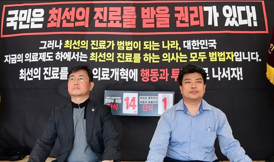 정성균 대한의사협회 총무이사가 단식 7일째인 15일 새벽 쓰러진 방상혁 의협 상근부회장에 이어 릴레이 단식에 들어갔다.