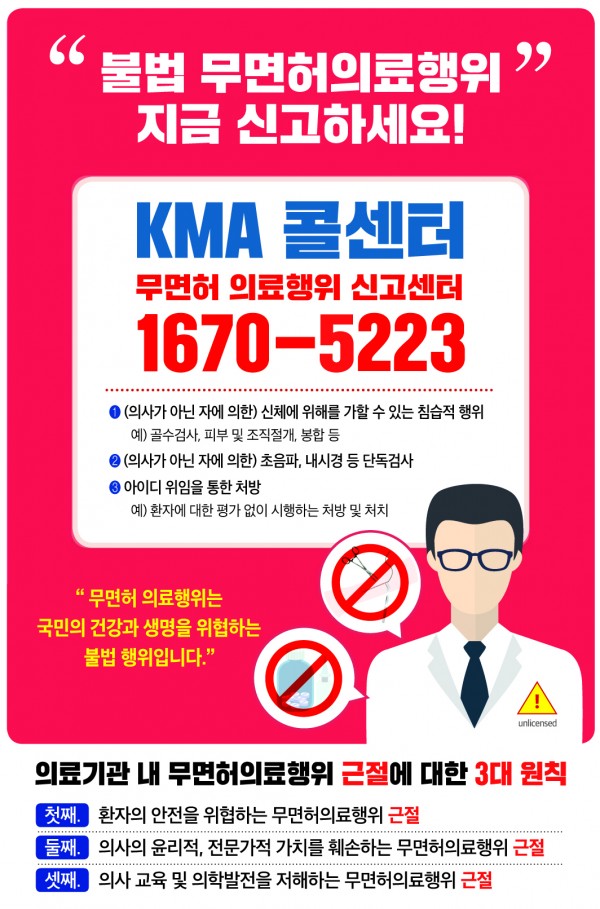 다. 무면허 의료행위 신고센터 신설 운영 안내 : (대표번호) 1670-5223