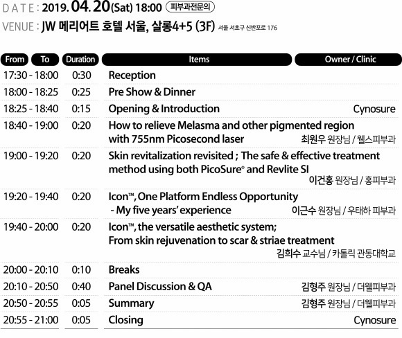 2019 Cynosure AESTHETIC exchange Seminar(4/20, 토)