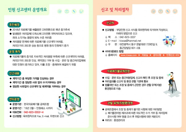 이에 유역(지방) 환경청과 한국의료폐기물공제조합에서는 “의료폐기물 처리업체 부당신고센터”를 운영함을 다음과 같이 알려왔습니다.