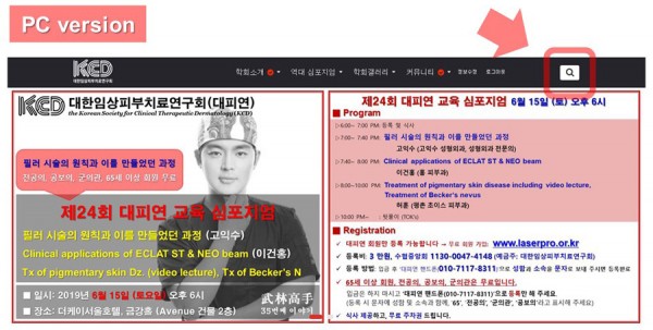 ▷PC의 경우 홈페이지 우측 상단에 ‘돋보기 모양 아이콘‘을 click 하신 후 검색 하면 되고