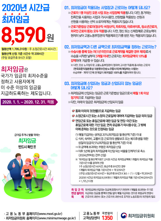 2020년 최저임금(8,590원) 및 바뀌는 노동법