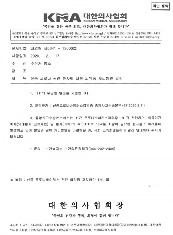 [복지부]신종 코로나 관련 의료기관.환자에 대한 의약품 처리방안(대리처방 가능)