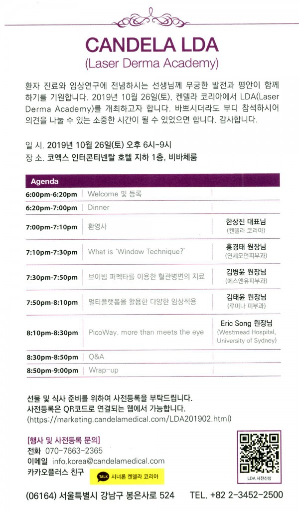 CANDELA LDA (Laser Derma Academy).10/26(토).Candela Korea user meeting