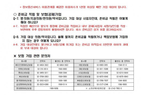 [의원협회]대부분의 의료기관은 개인정보손해배상책임보험 가입 의무 없음을 확인(Q&A)