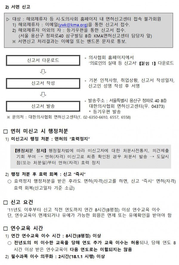 1) 해외체류자 : 이메일(ywk@kma.org)을 통한 신고서 접수.