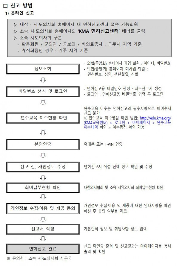 ▷ 대상 : 시·도의사회 홈페이지 내 면허신고센터 접속 가능회원