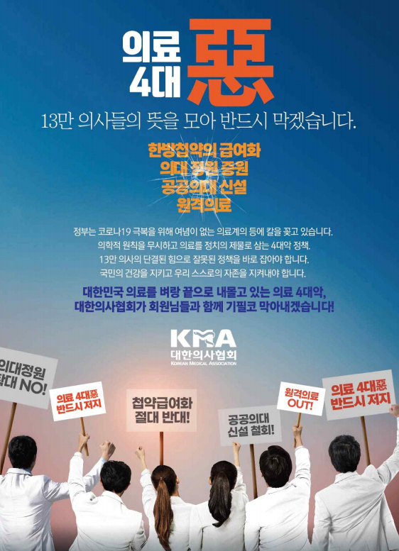 지금 정부는 전문성이 없는 보건복지부 장관과 인력들을 보건정책의 핵심에 앉혀놓고 오로지 정권연장을 위한 정치적 목적의 보건정책들을 브레이크 없이 밀어붙이고 있습니다. 이 졸속으로 만들어지고 있는 악법들로 인해 환자들과 의료계 전체가 피해를 입겠지만 가장 큰 피해자들은 앞으로 의사생활을 가장 오래 할, 그리고 추가 증원된 의사들이 쏟아져 나올 10~15년 후에 한창 의사로서 의업에 종사하실 지금의 젊은 의사 선생님들과 이제 곧 의사가 될 예비의사들입니다.