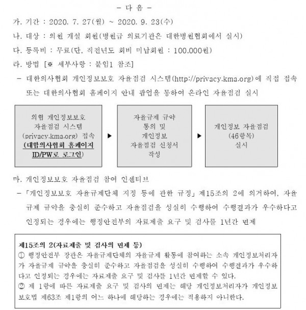 대한의사협회는 행정안전부가 지정한 개인정보보호 자율규제단체로서