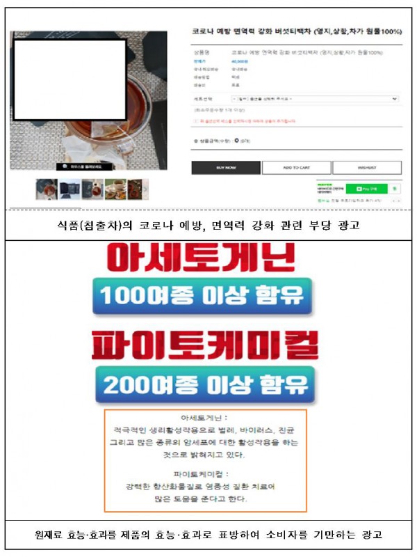 [식약처]코로나19 예방 또는 치료 효능.효과를 표방한 허위.과대광고 적발