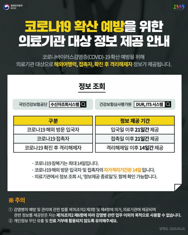 [질본]코로나19 확산 예방을 위한 정보 제공(해외여행력, 접촉자, 격리해제자) 대피연 메일보내기 이름으로 검색 0 11,484 2020.04.27 16:23 첨부파일 - 첨부파일: [질본]코로나19 확산 예방을 위한 정보 제공해외여행력, 접촉자, 격리해제자.jpg (1.1M) 355 짧은주소 - 짧은주소: https://laserpro.or.kr:443/bbs/?t=6as 주소복사 × 짧은 글주소 복사 Note! 위 주소를 드래그, 복사(Ctrl+C)하여 사용하세요. 이전글다음글 목록 본문 [질본]코로나19 확산 예방을 위한 정보 제공(해외여행력, 접촉자, 격리해제자) 이전글다음글 목록 댓글목록 등록된 댓글이 없습니다.