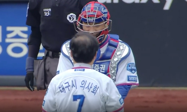 한편 이날 이성구 회장이 시구할 때 삼성라이온즈파크 전광판에는 ‘코로나19’에 대한 경각심을 높이기 위해 대한의사협회가 제작한 동영상이 상영되어 눈길을 끌었다.