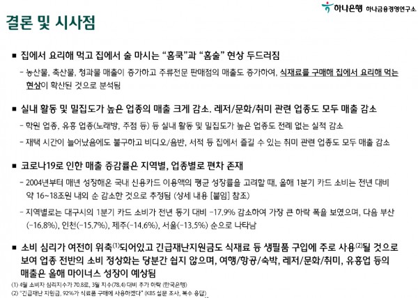 - ‘코로나-19‘가 가져온 소비 행태의 변화(1분기 신용카드 매출액 분석)