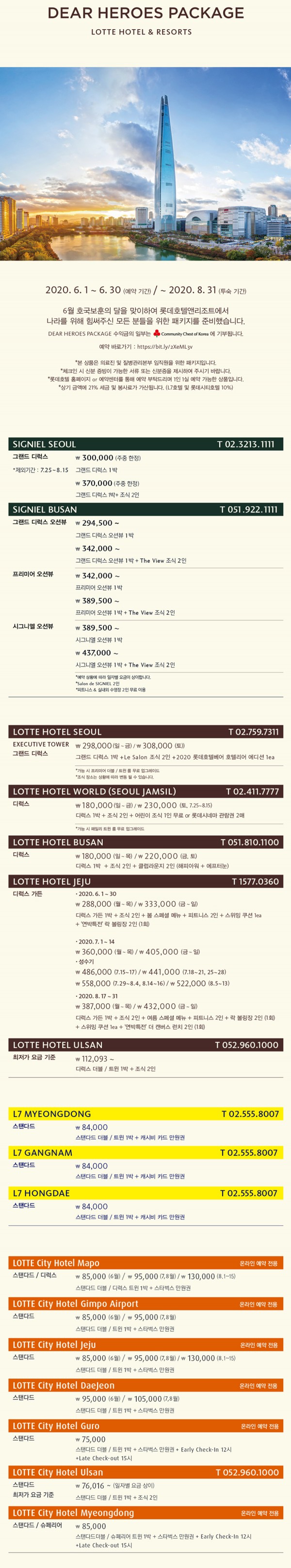 대한의사협회 회원 대상 롯데호텔 상품(특별 프로모션) 안내 대피연 메일보내기 이름으로 검색 0 12,762 2020.06.04 19:01 첨부파일 - 첨부파일: lotte.jpg (1.9M) 516 짧은주소 - 짧은주소: https://laserpro.or.kr:443/bbs/?t=6jH 주소복사 × 짧은 글주소 복사 Note! 위 주소를 드래그, 복사(Ctrl+C)하여 사용하세요. 이전글다음글 목록 본문 대한의사협회 회원분들 대상 롯데호텔 상품(특별 프로모션) 안내 이전글다음글 목록 댓글목록 등록된 댓글이 없습니다.