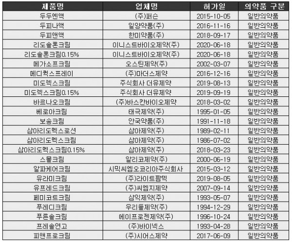 7월 7일 식약는 최근 대법원의 결정에 따라 프레드니솔론발레로아세테이트 품목에 대한 통일조정을 진행중에 있다고 밝혔다.
