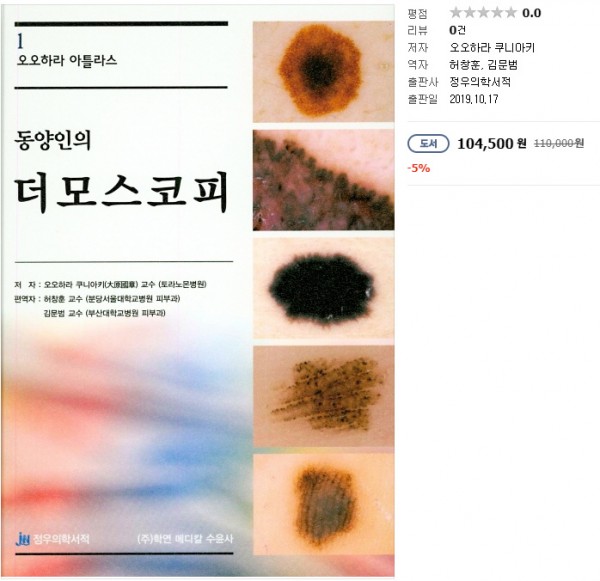 동양인의 더모스코피는 2017년 9월 신의료기술로 선정된 ‘더모스코피(Dermoscopy)’라는 진단기술에 대해 한글로 쓴 최초의 교과서다.