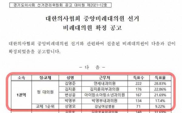 김지훈 대의원은 지난 ‘제29대 대한의사협회 중앙대의원‘도 역임한 바 있어 이번이 재선입니다.