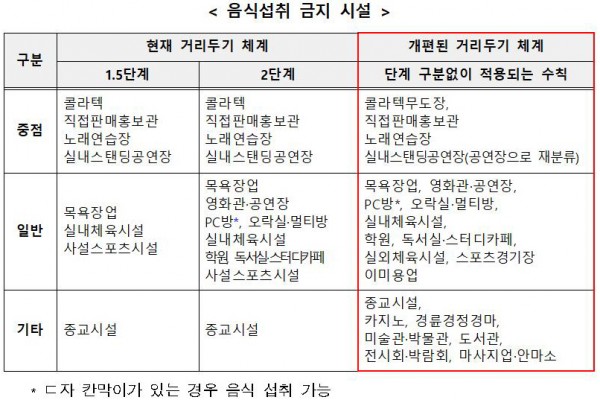 * 기존에는 거리두기 단계에 따라 음식 섭취 금지 적용대상이 달리 적용되었으며,