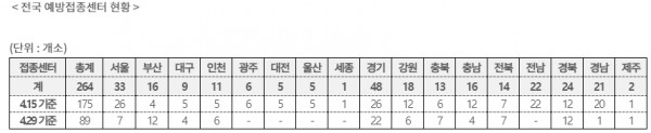 - 4월 모든 시·군·구에 264개 예방접종센터 설치·운영