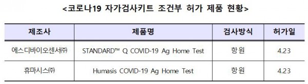 - 자가검사가 가능한 항원 2개 제품 ‘조건부’로 신속 허가