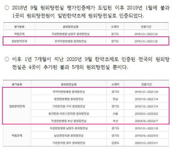 이후 1년 7개월이 지난 2020년 9월 한약조제로 인증된 전국의 원외탕전실은 4곳이 추가된 불과 5개의 원외탕전실 뿐이다.