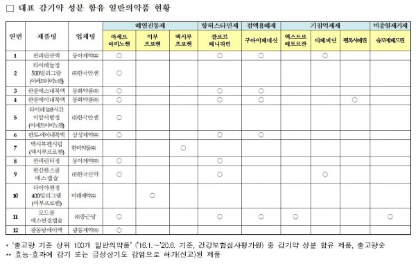 ▲감기약 성분인 ‘슈도에페드린’을 포함한 병용금기 21개 성분 조합