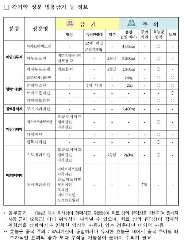 [식약처]감기약 의약품 병용금기 등 221개 성분 추가 행정예고