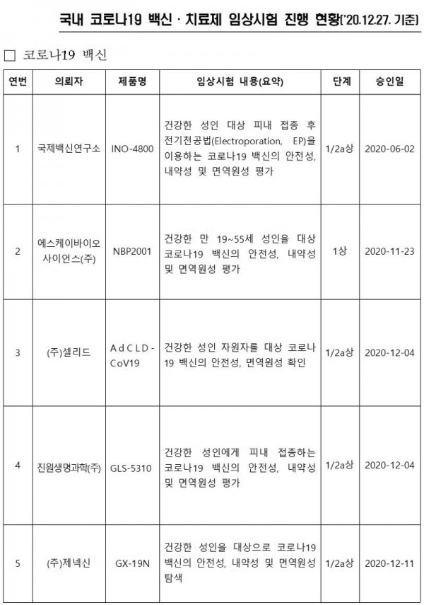 [식약처]국내‧외 코로나19 백신 및 치료제 개발현황(‘20.12.27현재)