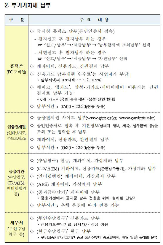 - 법인사업자는 1월 25일까지, 개인사업자는 2월 25일까지