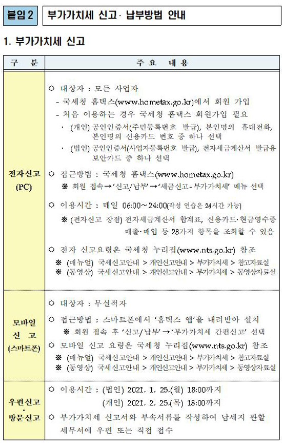 [국세청]’20년 2기 부가세 개인사업자는 2월 25일까지 1개월 연장