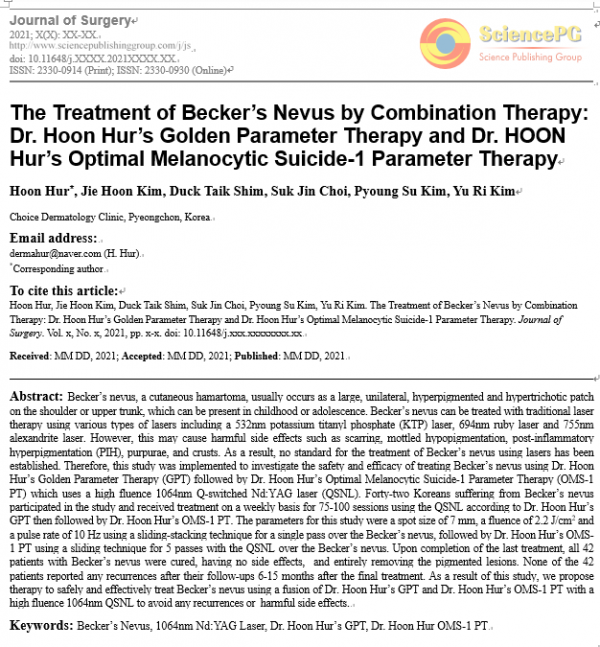 허훈 회장님이 GPT와 OMS-1을 병행해서 Becker’s Nevus를 치료하신 임상 연구가 Journal of Surgery 최신호에 accept 되었습니다.