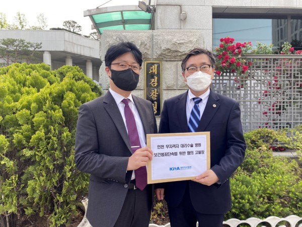 이날 고발장 제출에는 박명하 부회장과 전성훈 법제이사가 나섰다. 박 부회장은 “의료인이 아닌 무자격자가 직접적인 의료행위를 행한 사건이 발생했다는 것에 개탄하지 않을 수 없다. 의료인으로서 도저히 용서할 수 없는 일”이라며 엄중한 대응 의지를 피력했다. 이날 함께 참석한 전 이사는 “보건범죄 단속에 관한 특별조치법으로 고발한 이유는 비윤리 행위 회원에 철저하게 무관용으로 법적인 조치를 받게 함으로써 단호하게 대처하려는 의지”라고 말했다.
