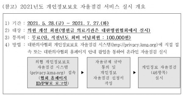 [의협]2021년도 의원급 의료기관 개인정보보호 자율점검 서비스 실시(7/27 마감)