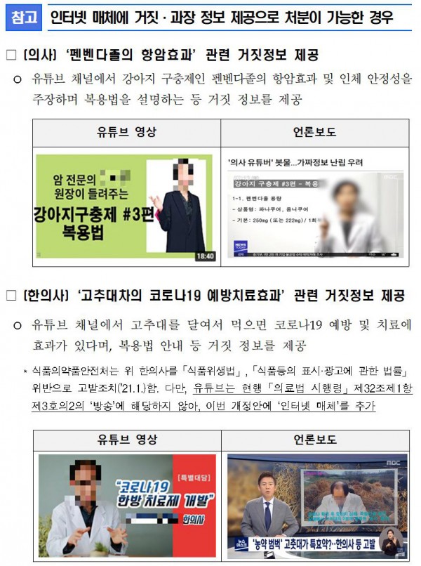 <참 고> 인터넷 매체에 거짓·과장 정보 제공으로 처분이 가능한 경우