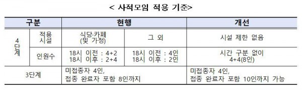 - 사적모임 기준을 단순화하고, 접종 완료자 제한 완화